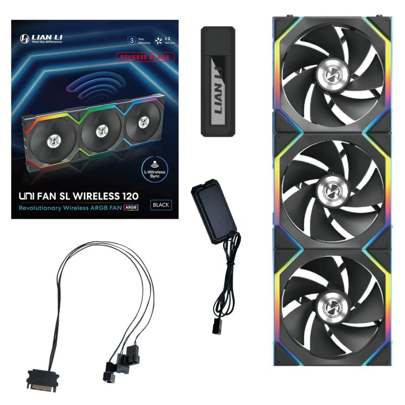 Вентилатори 3бр Lian Li UNI FAN SL Wireless ARGB PWM Reverse Blade - 120 mm Черен + Контролер