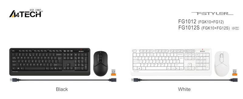 Комплект клавиатура и мишка A4TECH Fstyler FG1012, Безжичен, Бяла